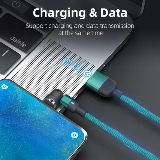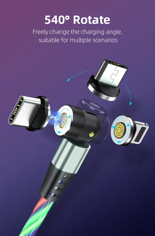 3 in 1 Luminous LED Magnetic Cable 3A Data Fast Charging 540 Rotatable 2m Micro, USB C, IOS (Multi Colour)