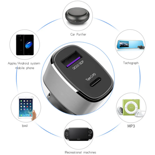 2 Port Fast charging 1 USB A 3A and 1 USB C PD20W Car charger (Black)