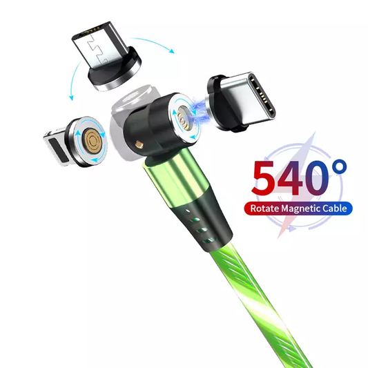 3 in 1 Luminous LED Magnetic Cable 3A Data Fast Charging 540 Rotatable 2m Micro, USB C, IOS (Green)