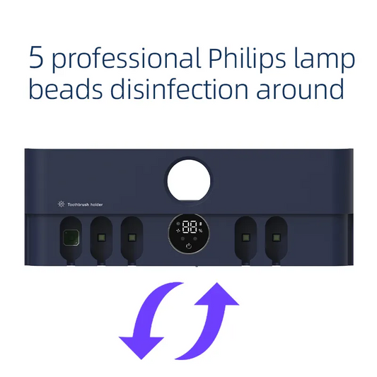 Toothbrush UVA UVC Sterilizer & Holder | 5V Rechargeable | Wall Mounted / Portable | 5 Slot