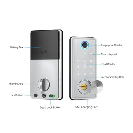 Smart Life Tuya WIFI Access Control Fingerprint Keypad Card Door Lock T1 (Silver)