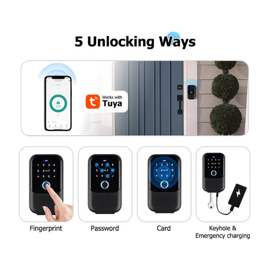 Smart Life Tuya Bluetooth Access Control Fingerprint Keypad Card Key Cylinder Door Lock (Black)