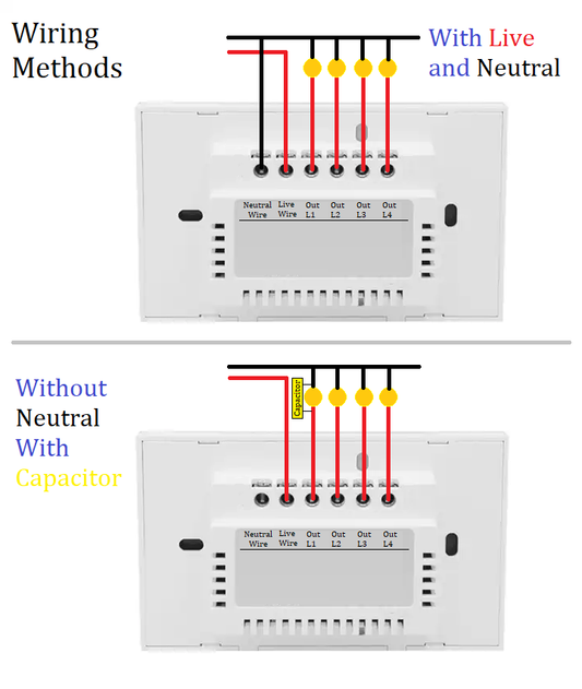 Smart Life Tuya WIFI 4CH LED Light Switch | Live & Neutral / Live & No Neutral Wire | Black