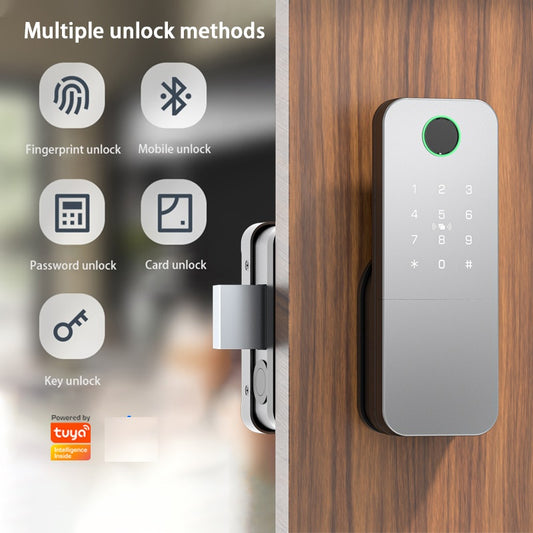 Smart Life Tuya WIFI Door Handle Fingerprint Keypad Card Doorbell Lock (Silver & Black)