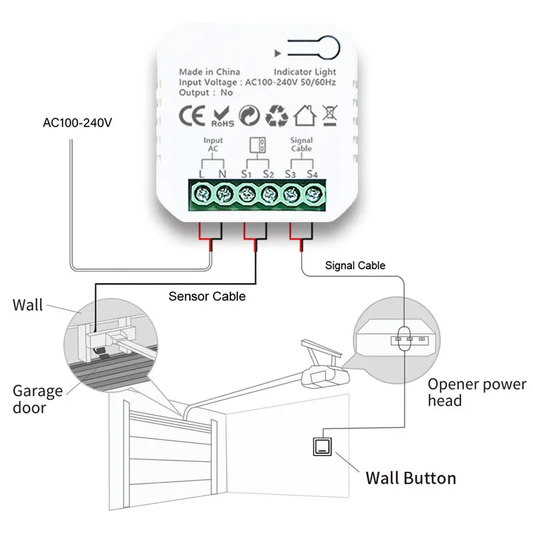 Smart Life Tuya Zigbee Gate Garage Door Opener Mini Switch Inching Relay w/ Contact Sensor 100V-240V