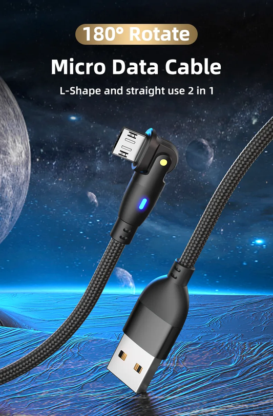USB A to Micro USB Cable 2.4A 180° Rotatable Data Fast Charging 2m Nylon Braided (Black)