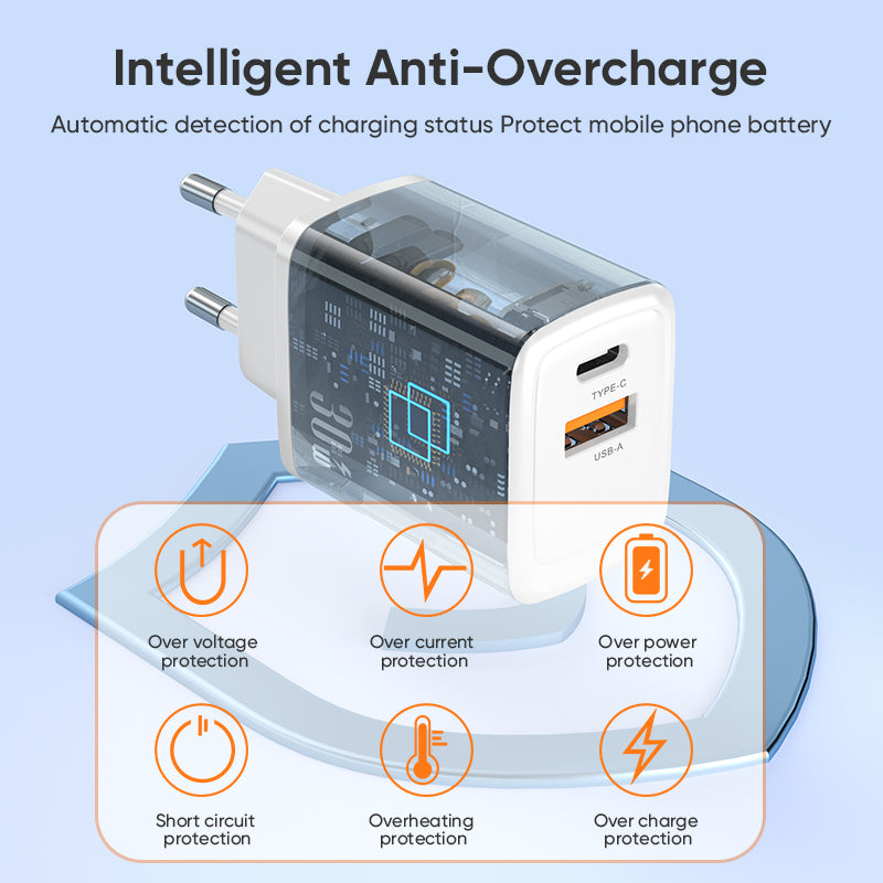 ⚡ 30W Dual‑Port Fast Charger (USB‑C PD + USB‑A QC)