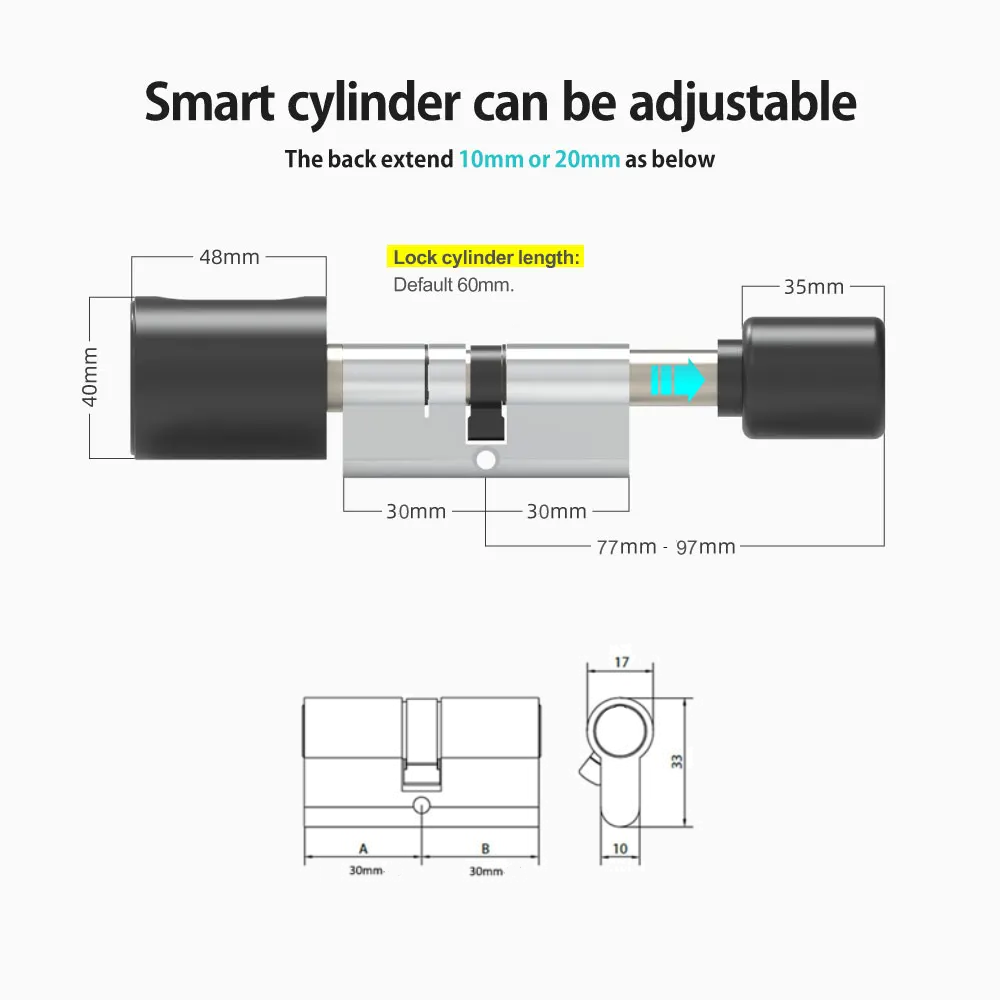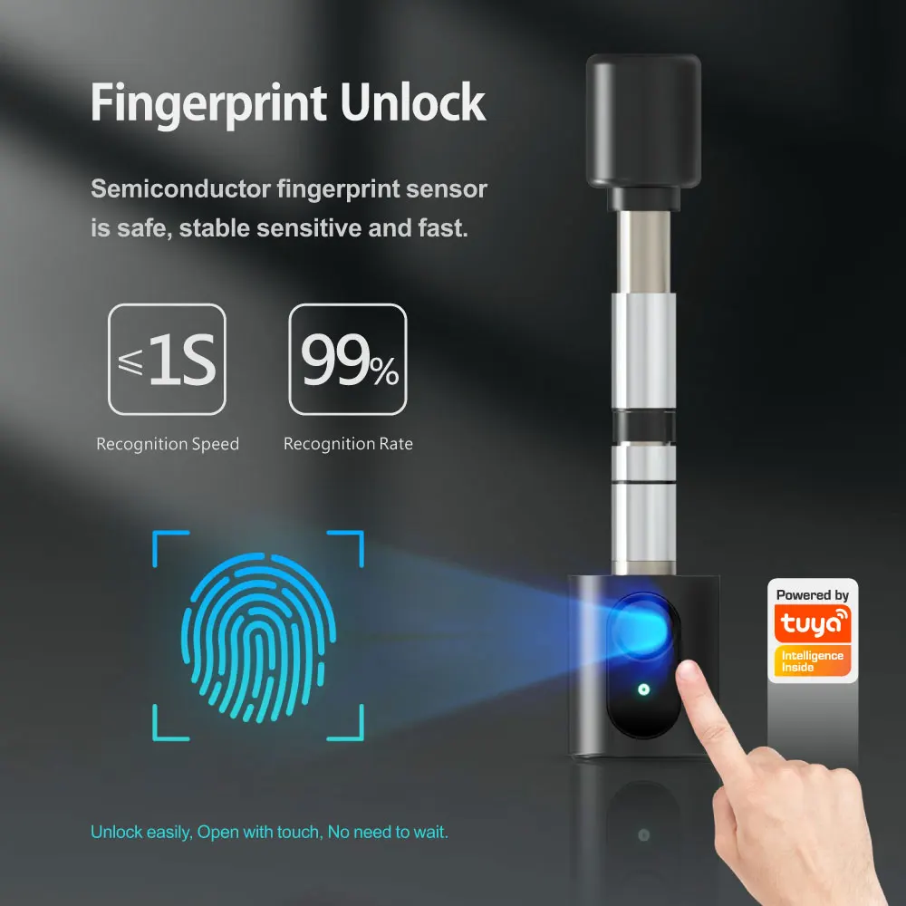 Smart Life Tuya Bluetooth Access Control Fingerprint Card Smart Key Cylinder Door Lock (Black)