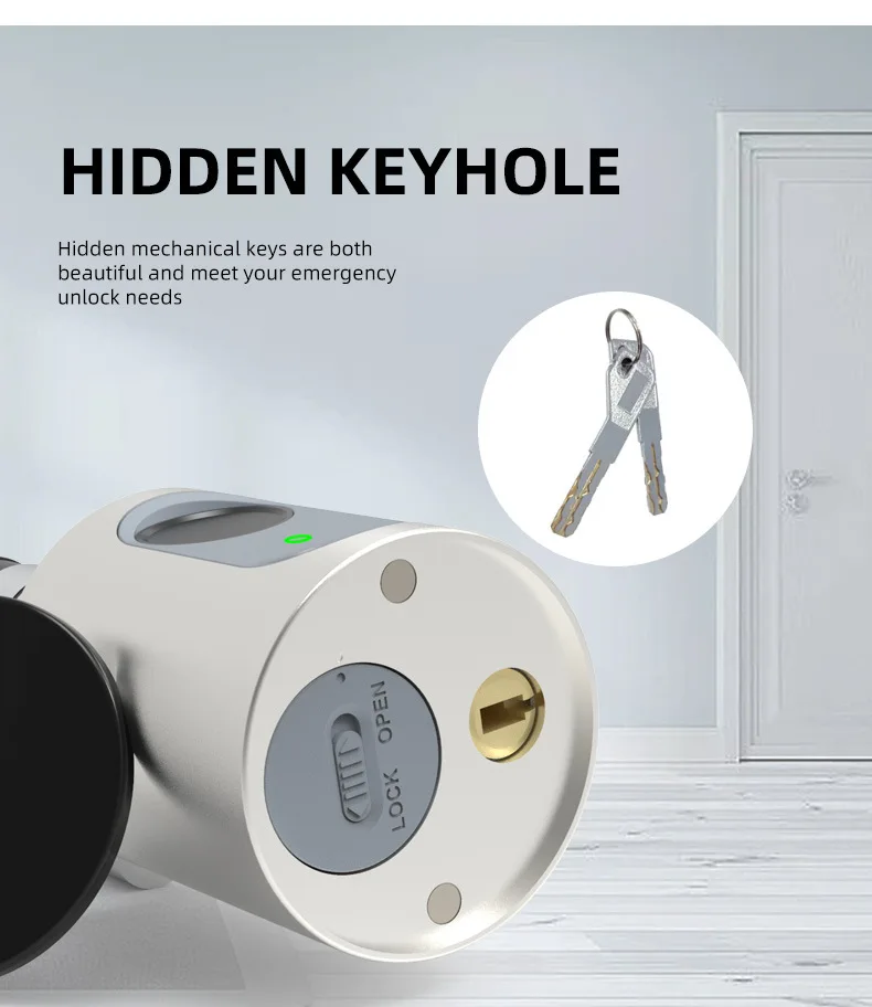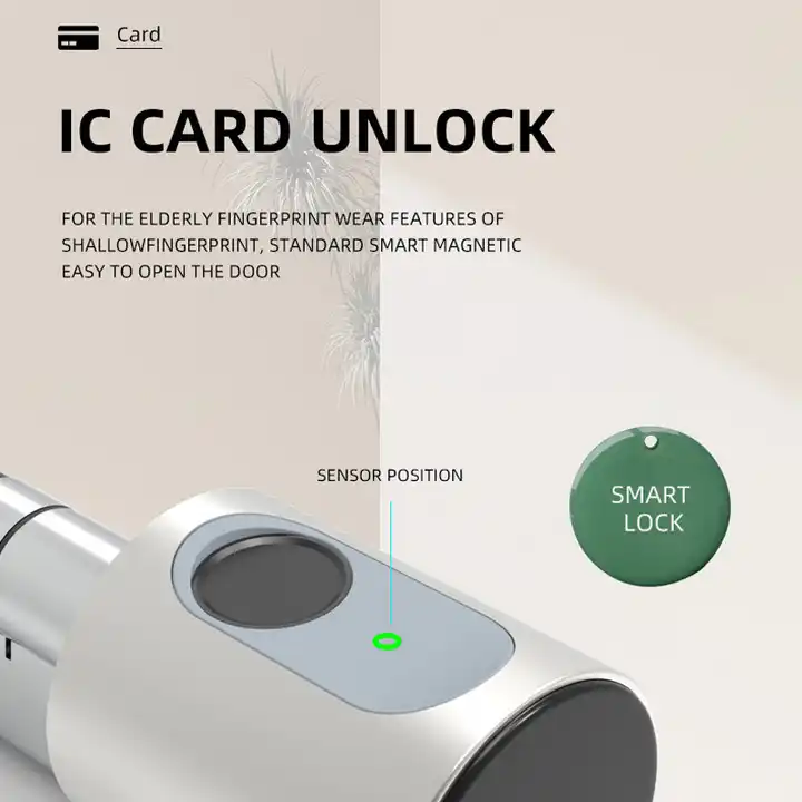 Smart Life Tuya Bluetooth Access Control Fingerprint Card Smart Key Cylinder Door Lock (Silver)