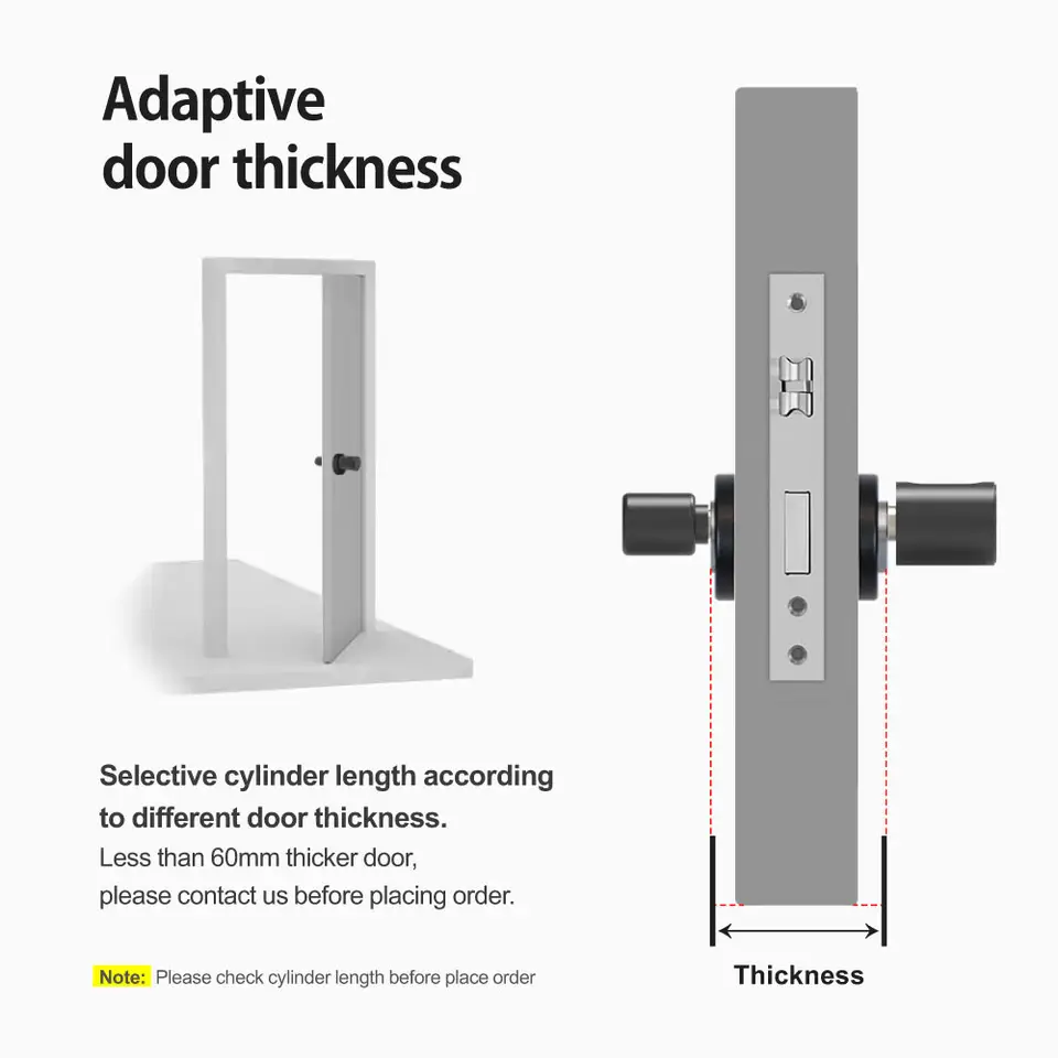 For Door thickness less than 60mm. Fits Wooden Doors, Aluminium Doors, or Customs Doors with Cylinder Locks.