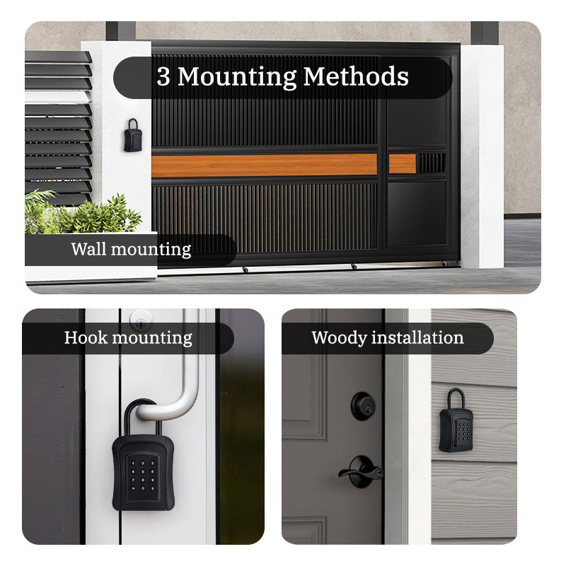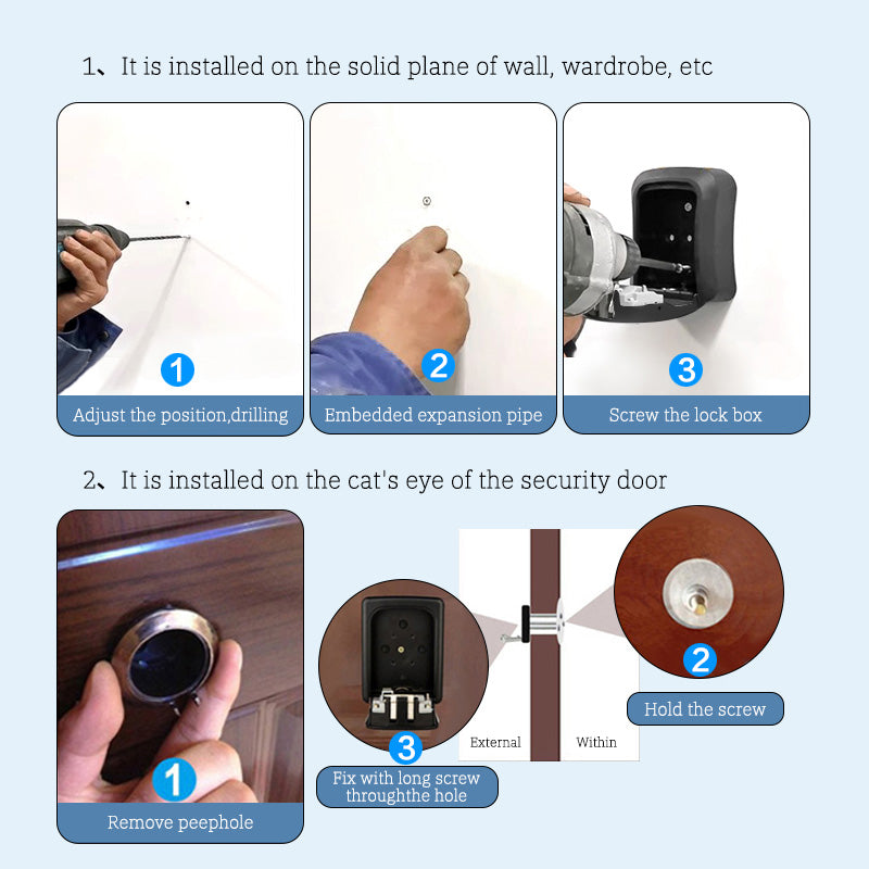 Conveniently store your Key safely in the Smart Keybox and send your visitor / Guest a temporary password to get the keys to enter your house. It is rust-resistant. It's a sturdy and reliable key-safe box, lockbox was made of high-strength Aluminum alloy, which can protect the box from hammering, sawing, or prying. You could hang it exactly where you need like a door knob or car or you can fix the lock box on the door or wall. The lock box is suitable for indoor and outdoor use.