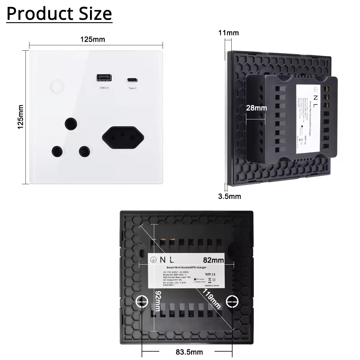 Supports South African 3 Pin Plug, EU 2 Pin Plug, and USB A or USB C.