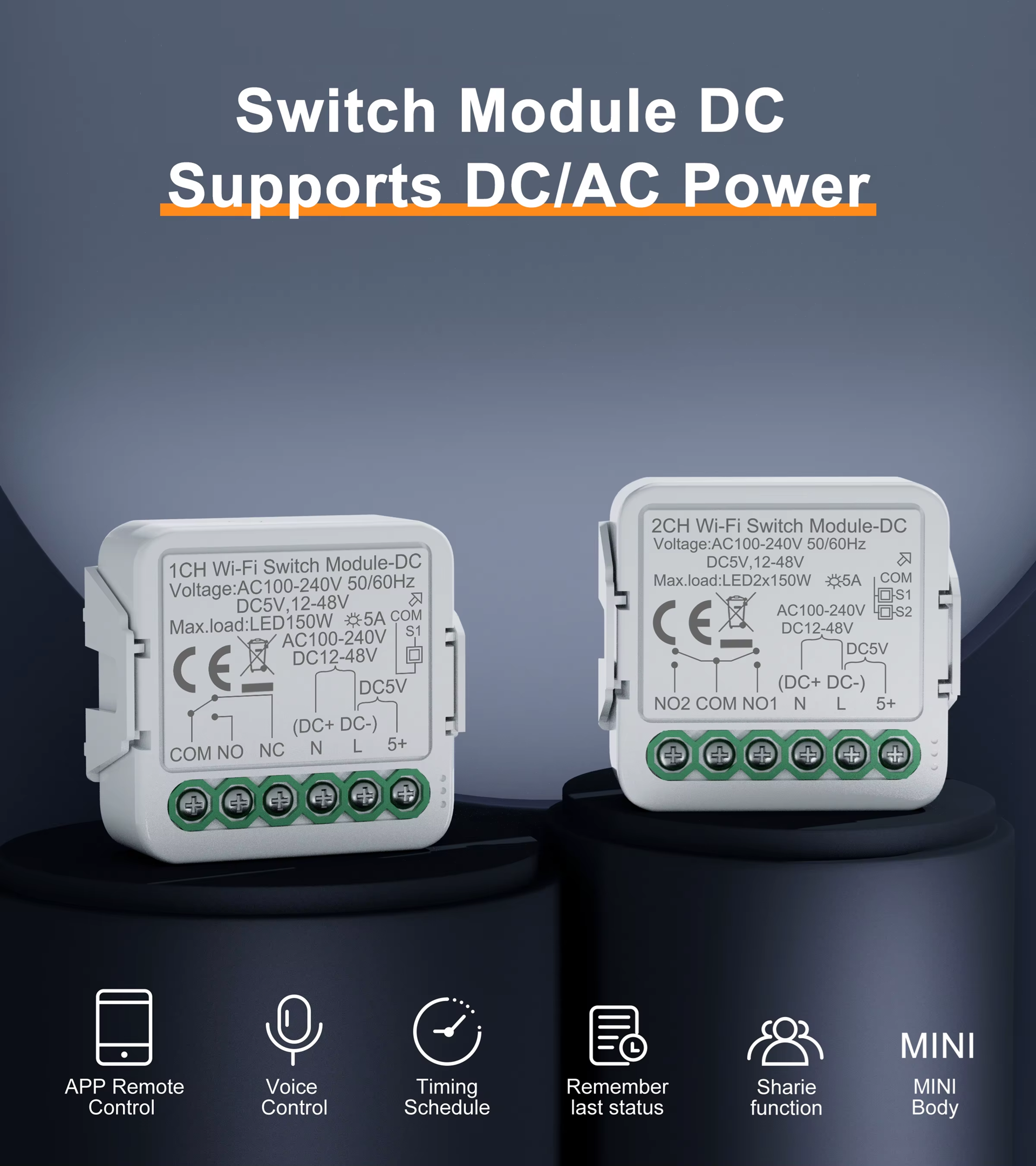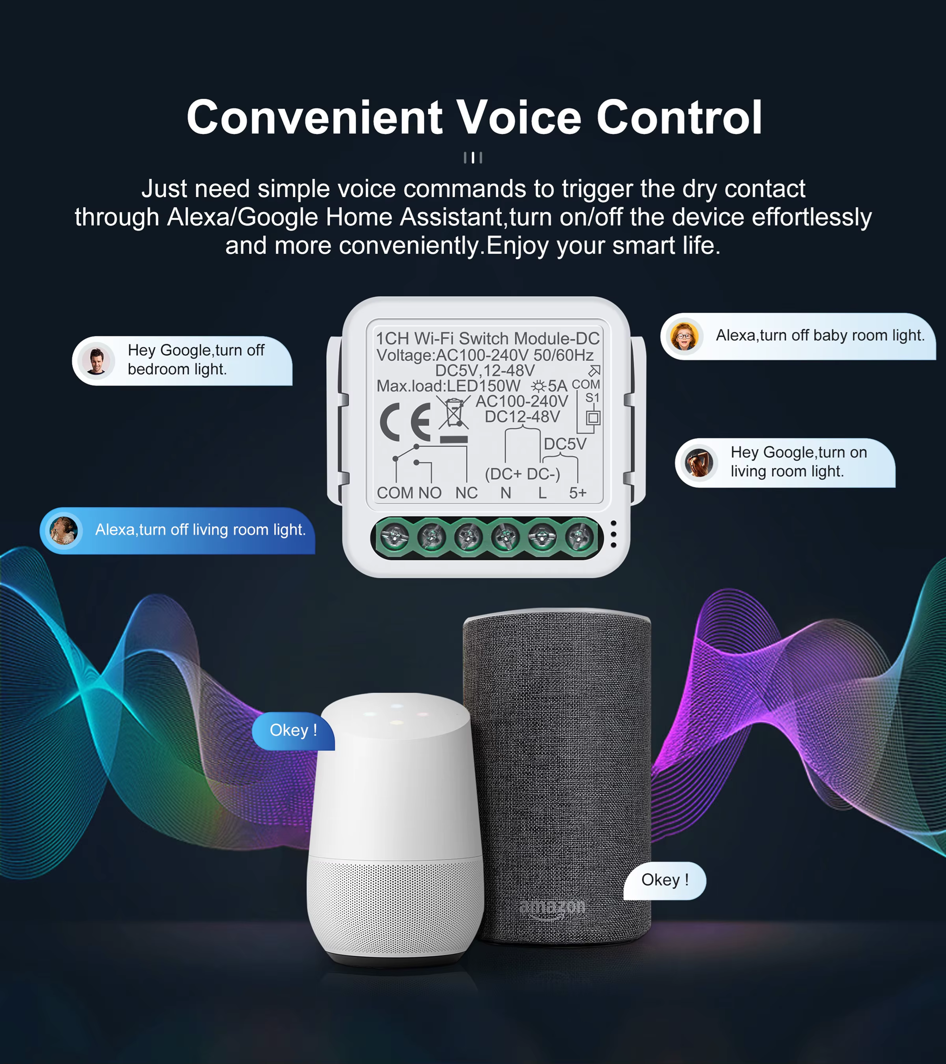 Smart Life Tuya WIFI 1CH 150W LED Light / 5A 1000W Appliance Neutral Mini AC/DC Switch | Dry Contact