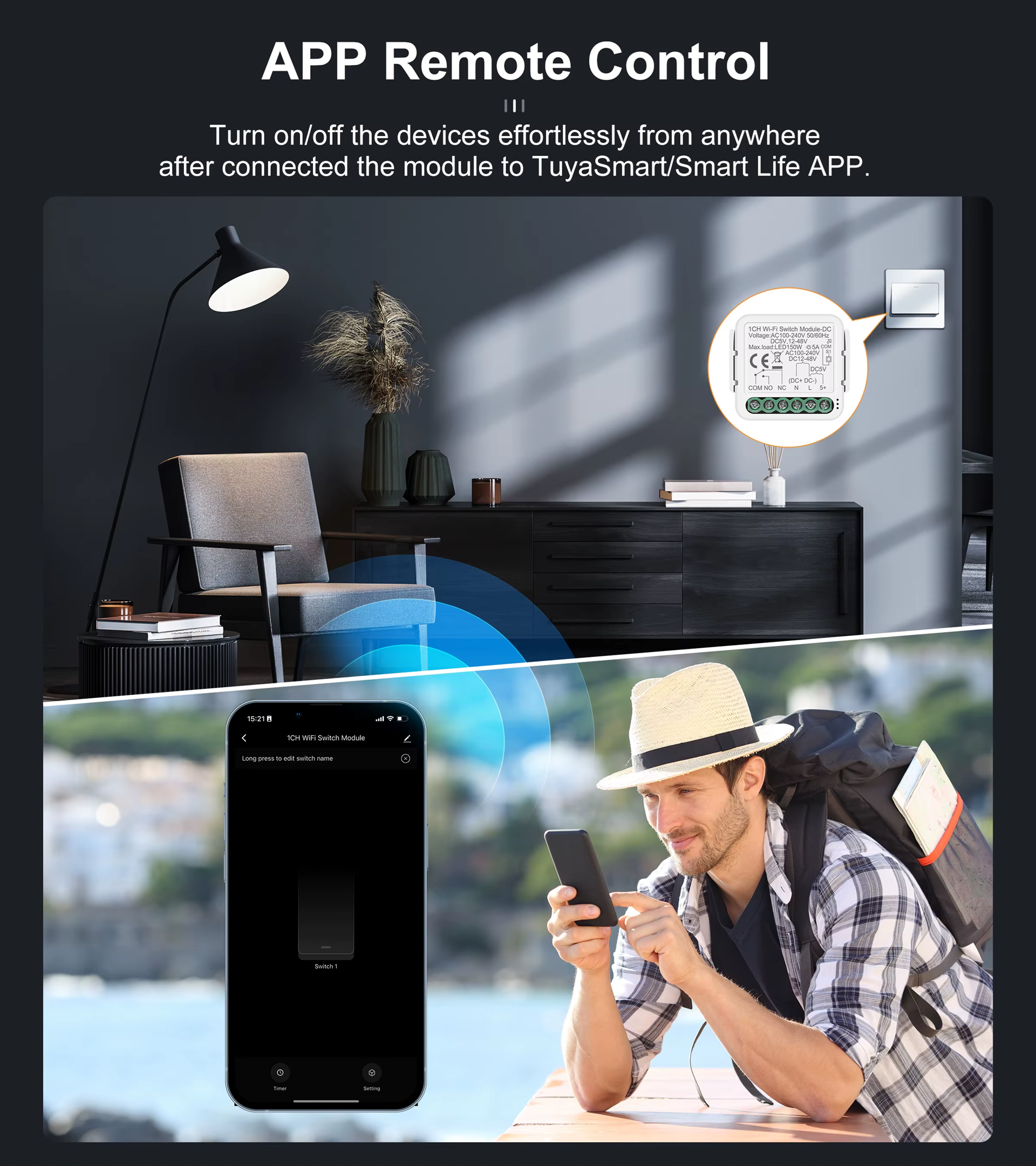 This Basic Smart Switch is used to Turn your Devices ON/ OFF from your Mobile Smartphone via the Tuya/ Smart Life App. Switch your Devices ON/ OFF from anywhere in the world.