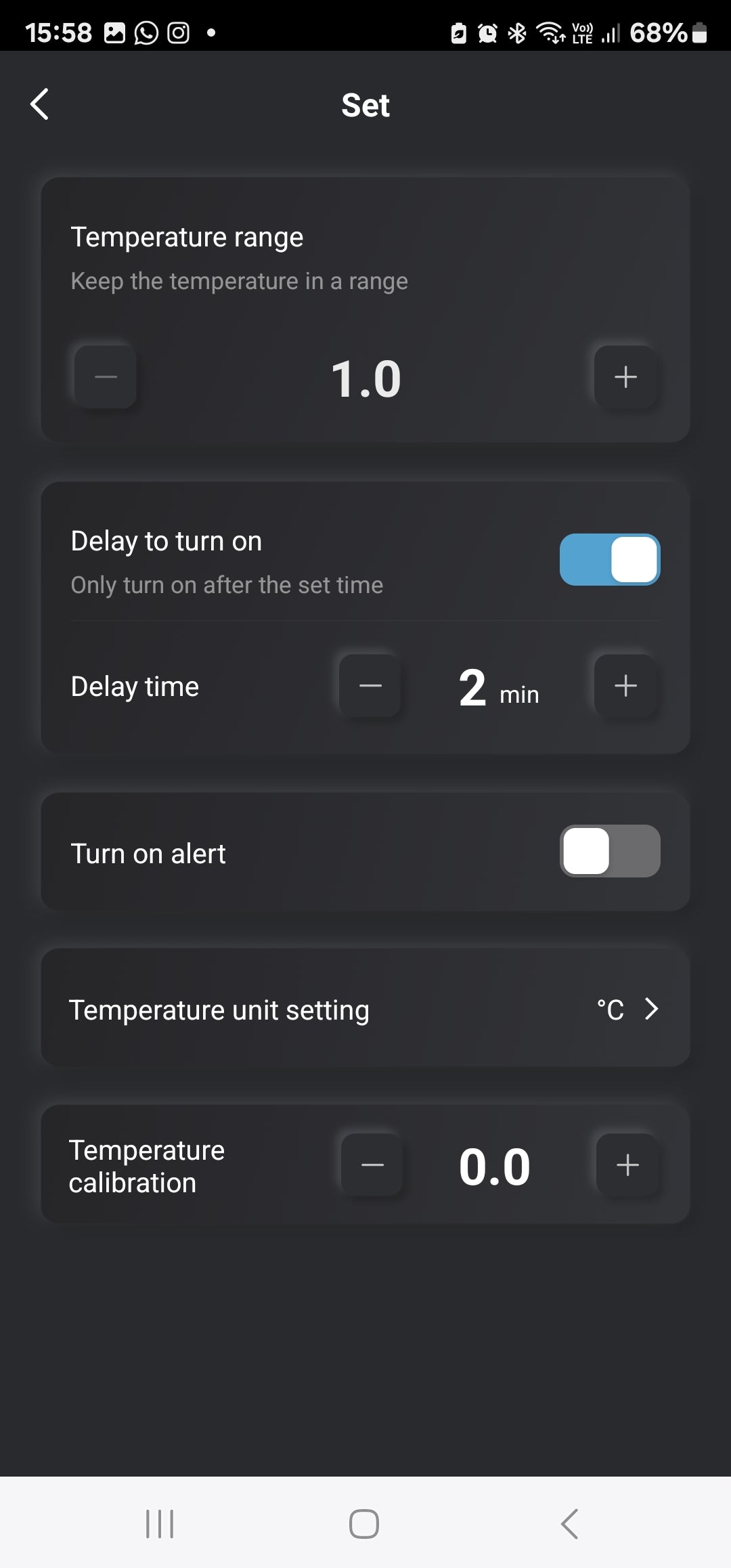 Heating Mode: Set target temperature & if temperature drops below Temperature range target then it will turn the switch on to get the temperature back up to target.