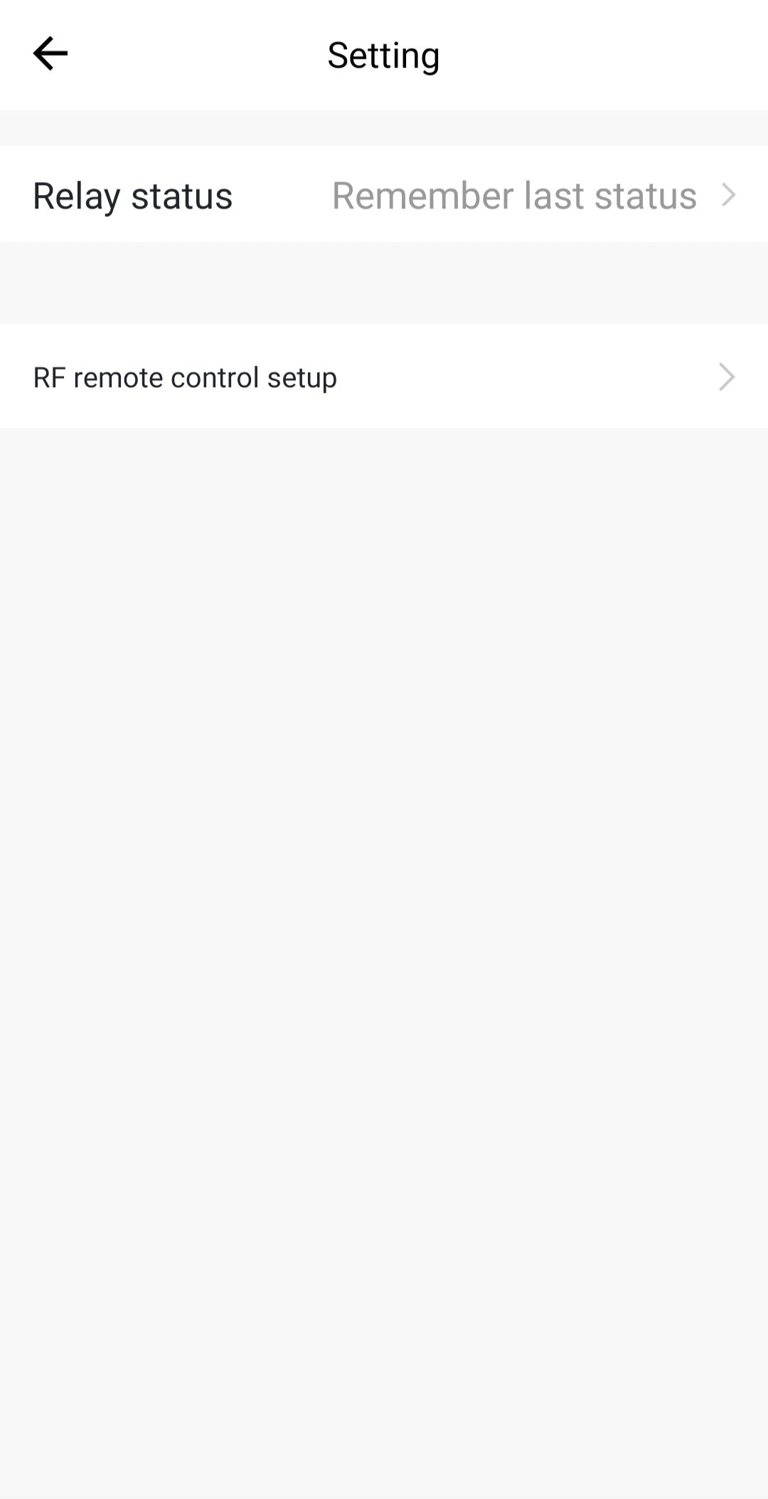 Settings: Relay Status (On, Off, Remember Last Status). After the Power cut of this switch the switch turns on with the selected Status.