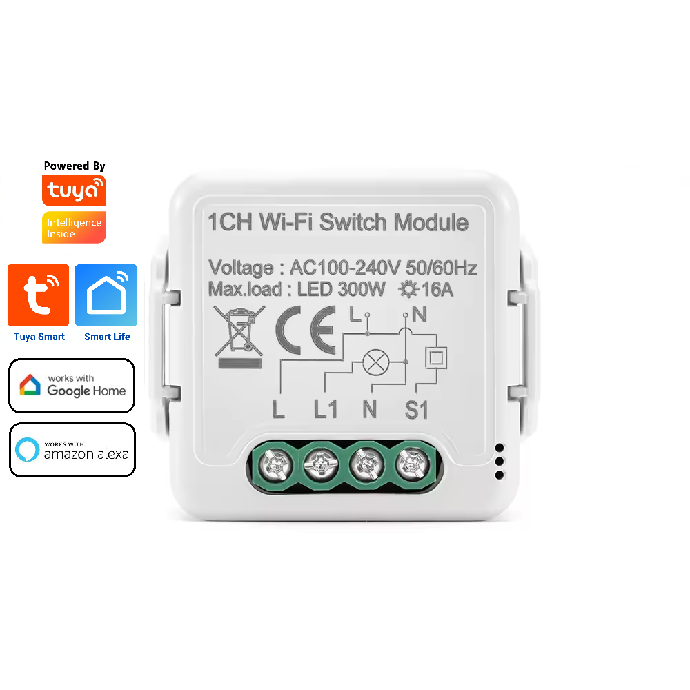Smart Life Tuya WIFI 1CH 300W LED Light / 16A 3500W Appliance Neutral Mini Switch