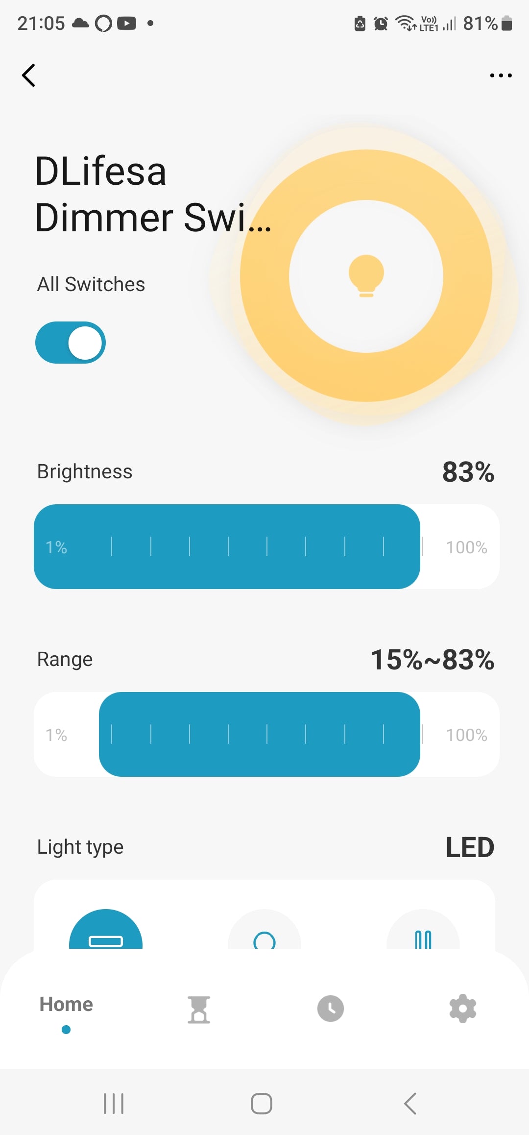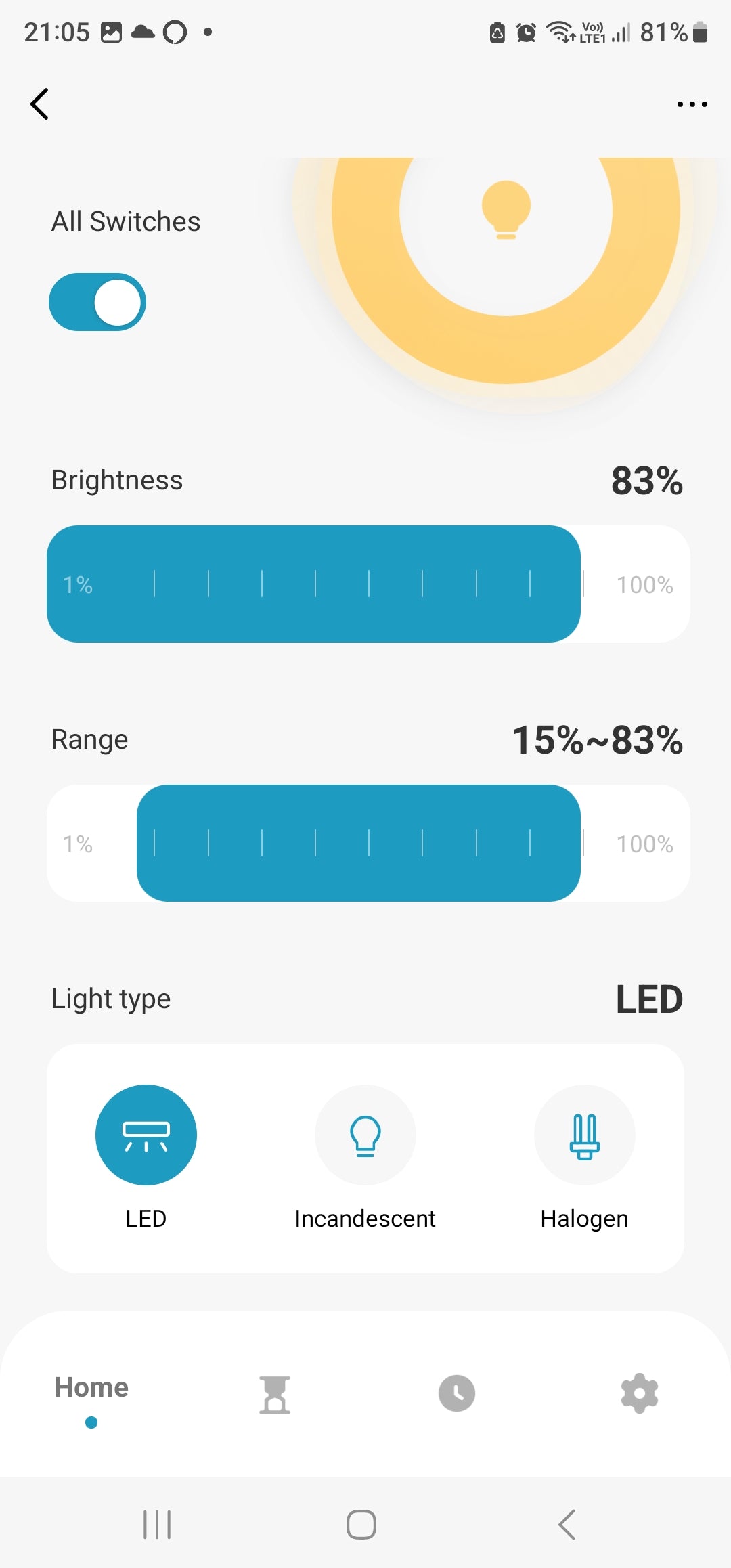 Range setting in the app: Once Set then the brightness will only turn to this Minimum and Maximum %. For example if you set lowest at 15% and Highest at 83% then you will only be able to turn the bulb to lowest at 15% and Highest at 83% via Manual Touch buttons, app, Alexa, or Google Home