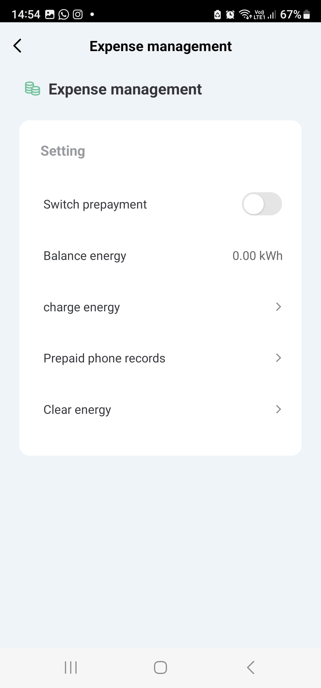 Expense Management: Switch prepayment | Balance Energy | Charge Energy | Prepaid Phone records | Clear energy.