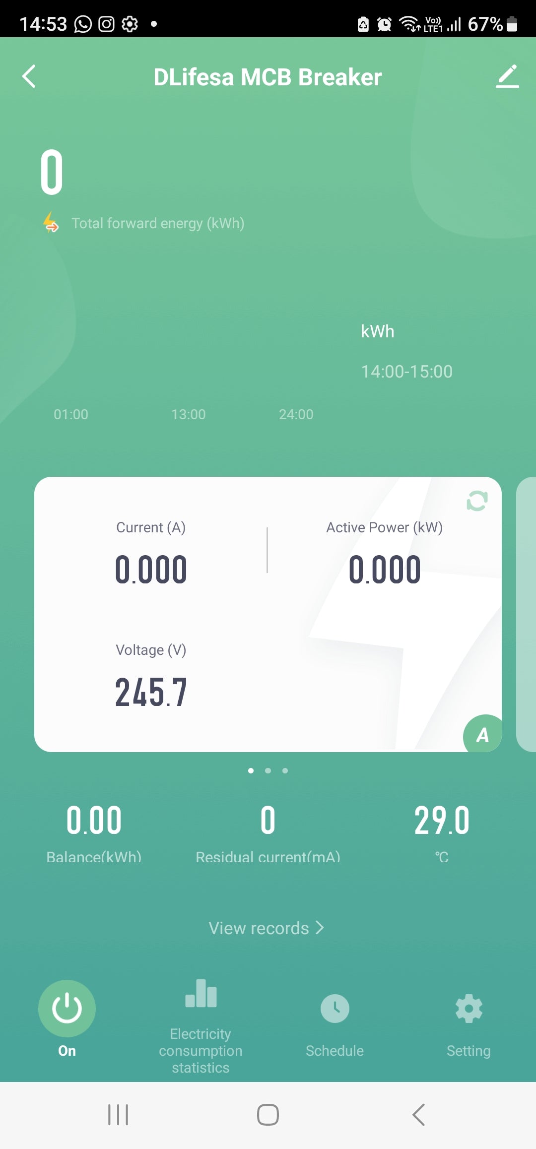 Balance (KWh) | Residual current (mA) | Switch Temperature.