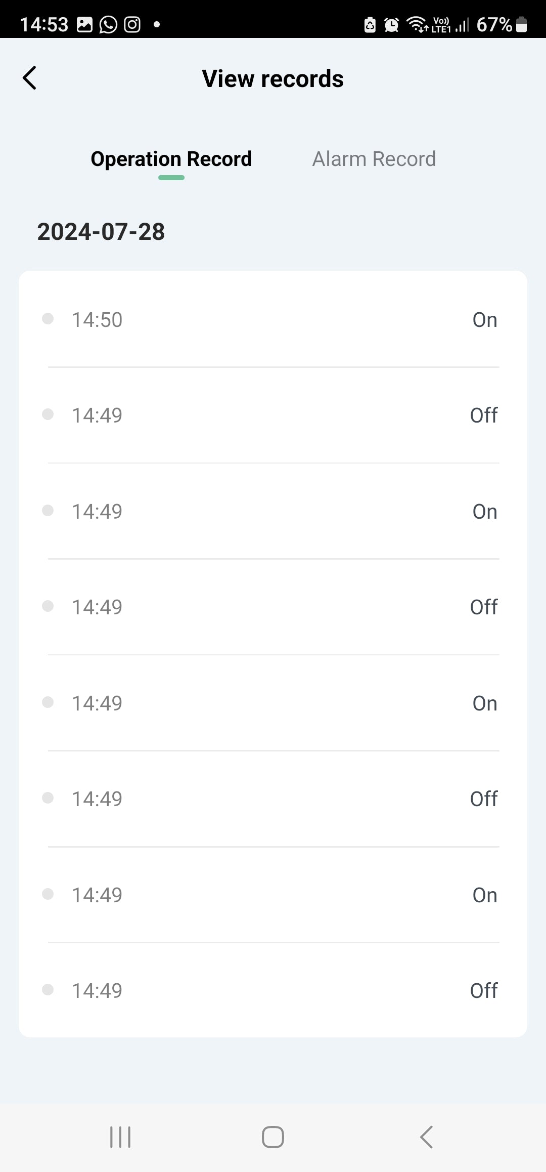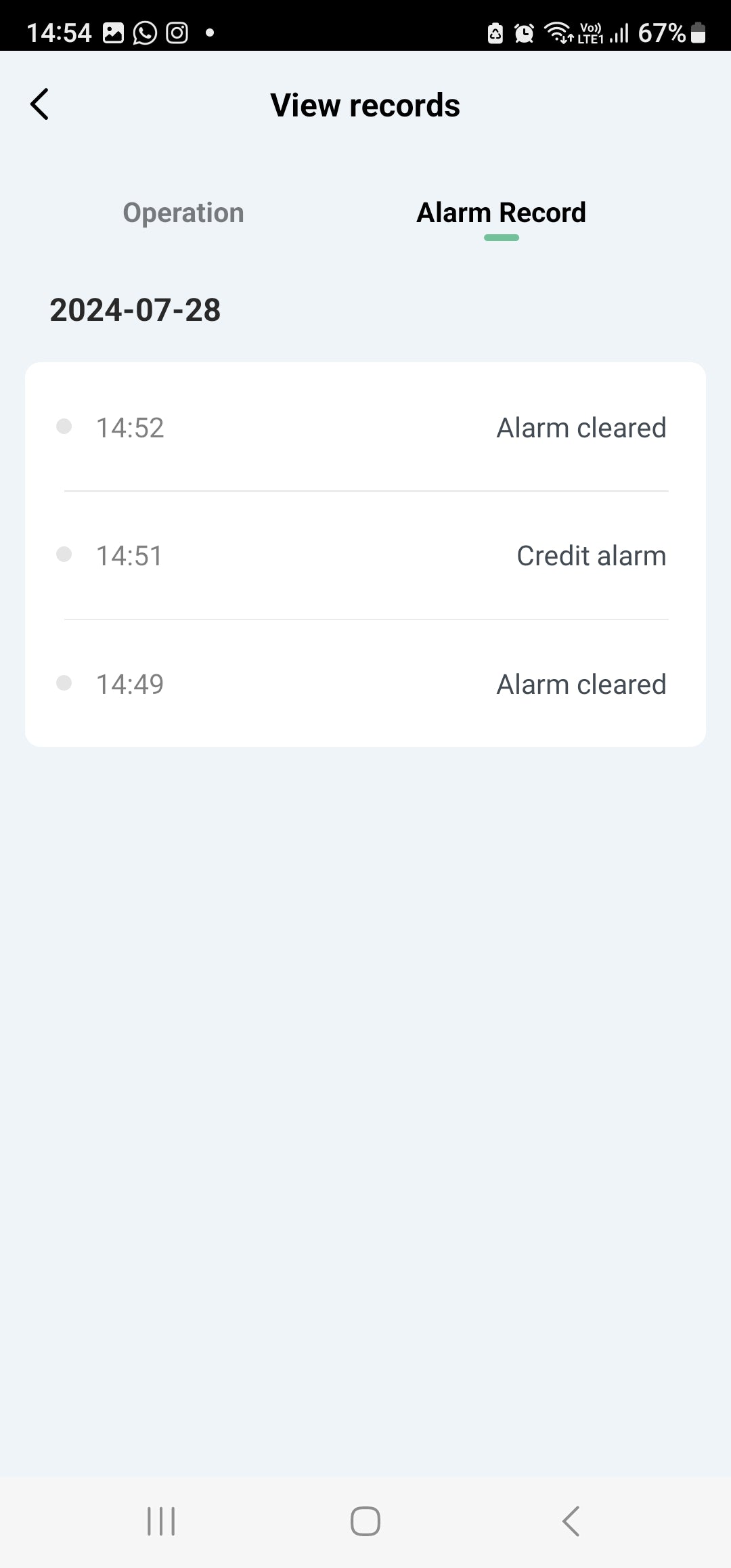 View Records: Operation and Alarm Records by Day and Time.