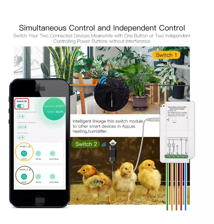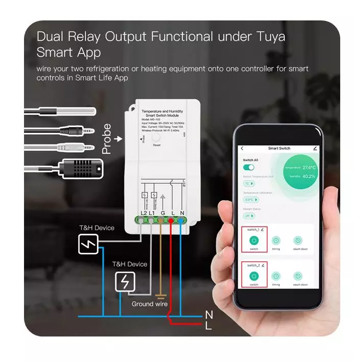Smart Life Tuya WIFI 2CH 15A 3300W Switch w/ Temperature Humidity Probe Sensor