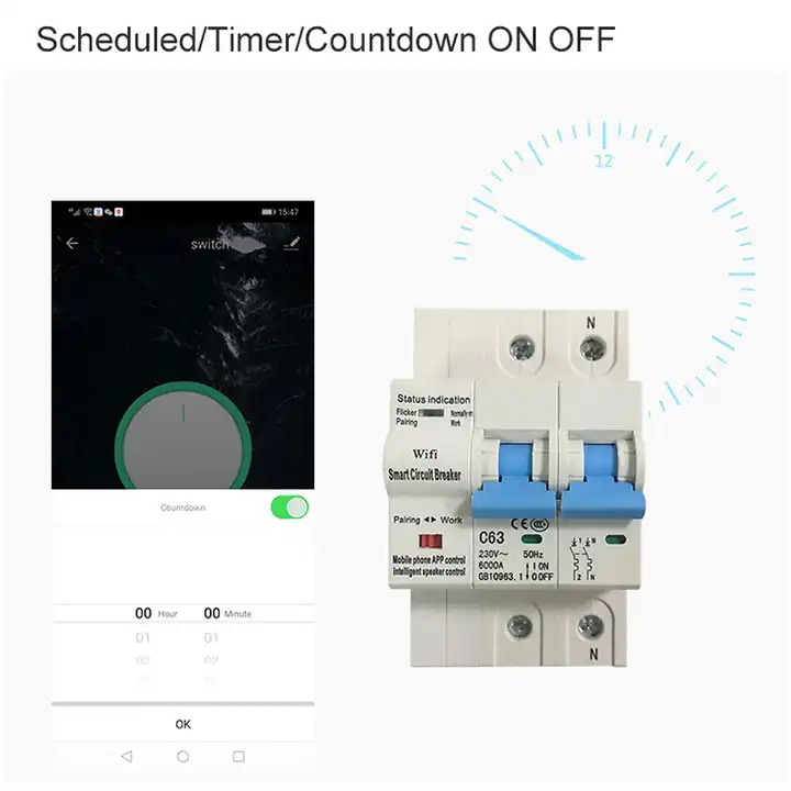 Smart Life Tuya WIFI 2P 230V 80A 17600W 17.6KW MCB Switch Circuit Breaker