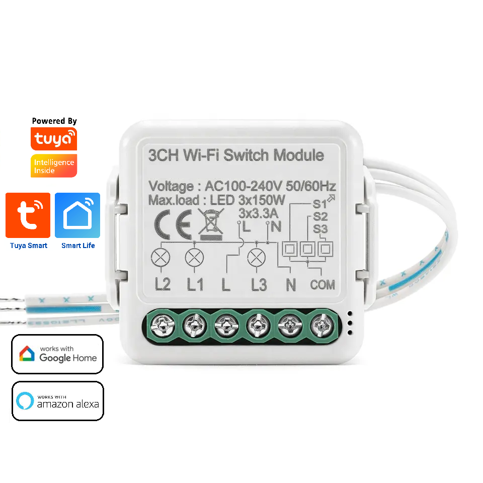 Smart Life Tuya WIFI 3CH 150W LED Light / 3.3A 700W Appliance Neutral Mini Switch