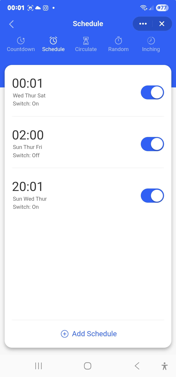 Timer: per channel: Countdown | Schedule | Circulate | Random | Inching.