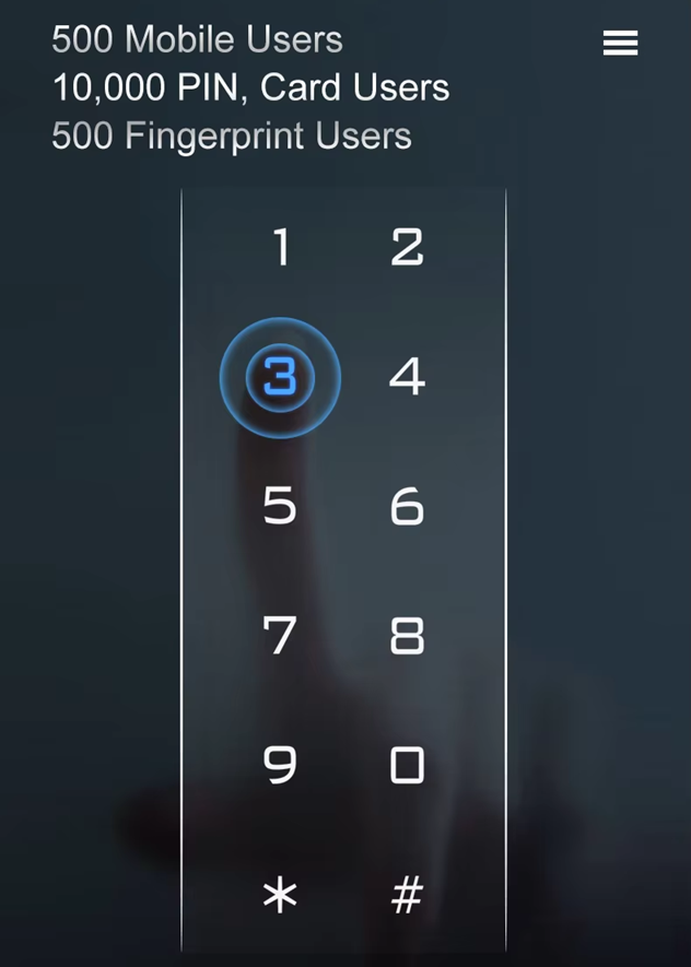 Password Peeping Prevention function allows you to input a random number then your password then random numbers and once you press the # key then it will register the correct password for example; XXXX CorrectPassword XXXX (X being Random Numbers) Max 10 Digits.