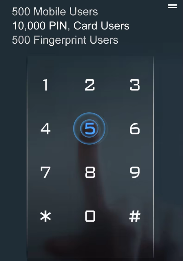 Supports up to 10 500 users, including up to 9988 Common Users (500 Fingerprint, 9988 Card/ Passwords users, 10 Visitors & 2 Panic Users.)