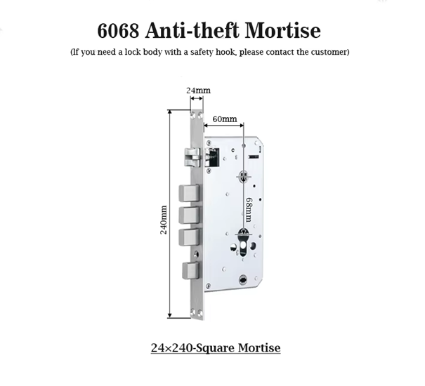 Default Lock body: 6068 | 240 x 24mm | 1 Latch & 4 Bolts.
