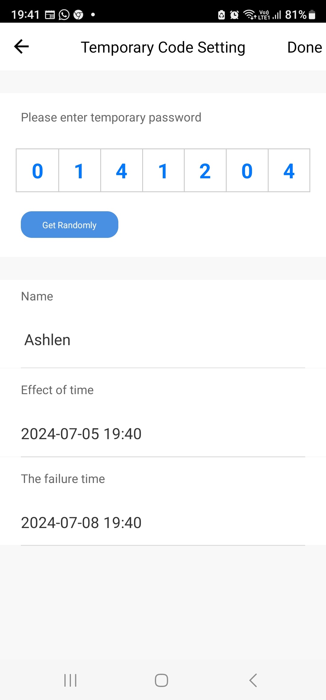 - Temporary Password (Add a Temporary password that Starts and ends at a certain time)
