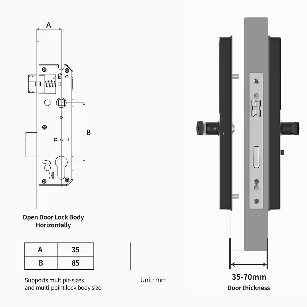 Our Smart Door Handle is the perfect access control for opening your Doors via Fingerprint, Keypad, and IC cards or from Mobile smartphones via the Tuya/ Smart Life App from anywhere in the world. Suitable for Homes, Apartments, Houses, Guest Lodges, Bed and Breakfast accommodations, Airbnb, Shops, Farms, Businesses, etc.