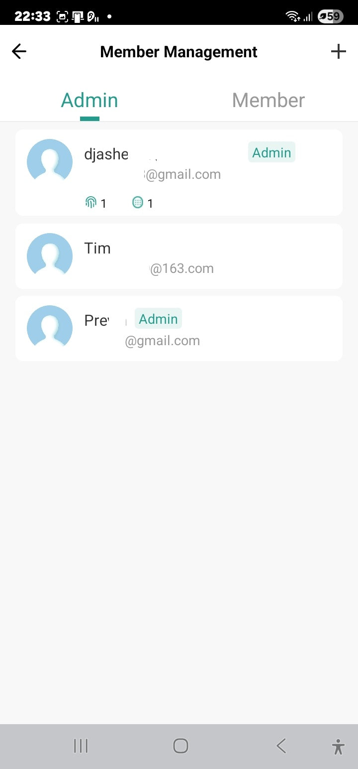 - Member Management: Manage Family Members Fingerprints, Passwords, Cards. Duress can be enabled on these Methods so if you unlock using a certain Fingerprint, Password, or Card then it will unlock as well as trigger a Notification to the app in case of emergency. Users are added only via the Admin menu on the handle then binded/ Associated on the app once a unlock is triggered.