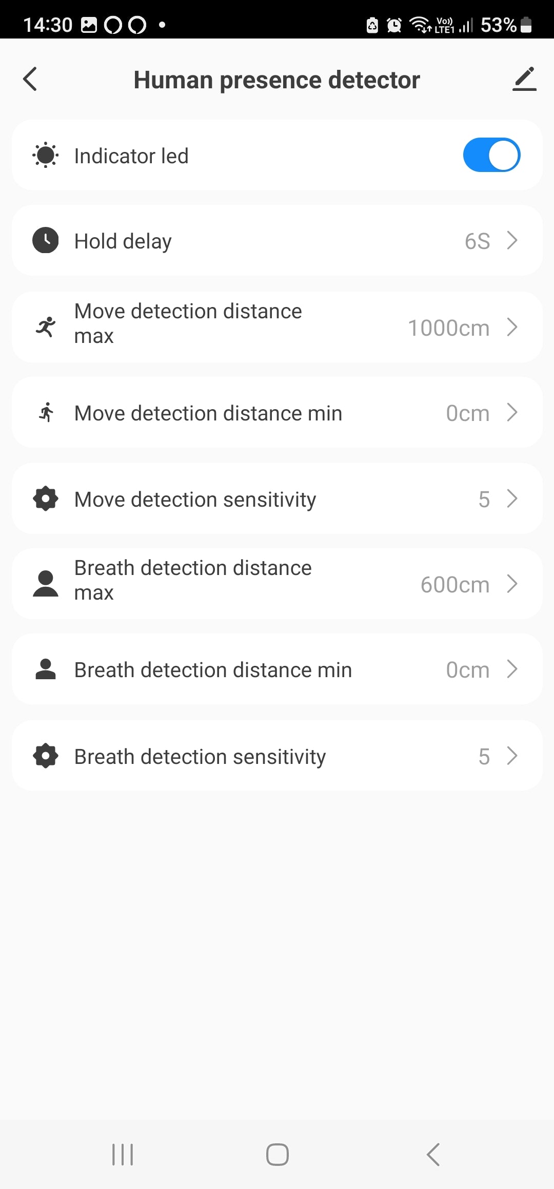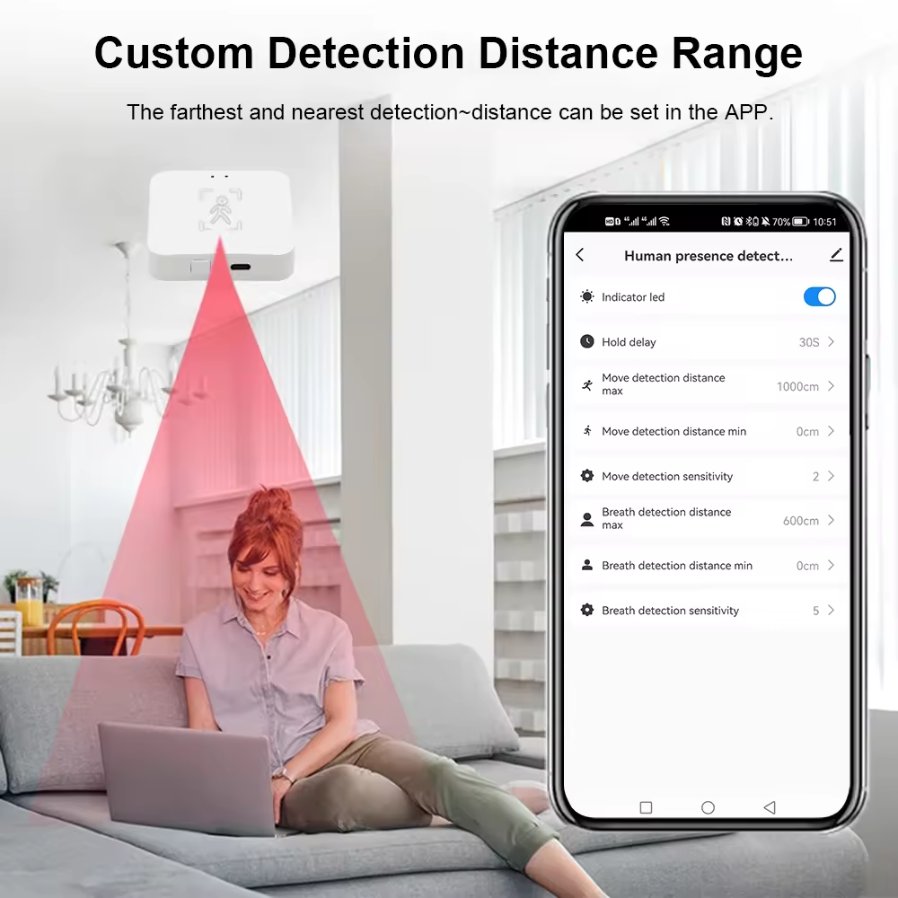 Create Automations based on Small Movement Detection | Breath Detection | Light Intensity | State | Target distance | Breath Detection Sensitivity | Breath Detection Distance Minimum | Move Detection Sensitivity | Small Move Detection Sensitivity | Small Move Detection Distance Minimum.