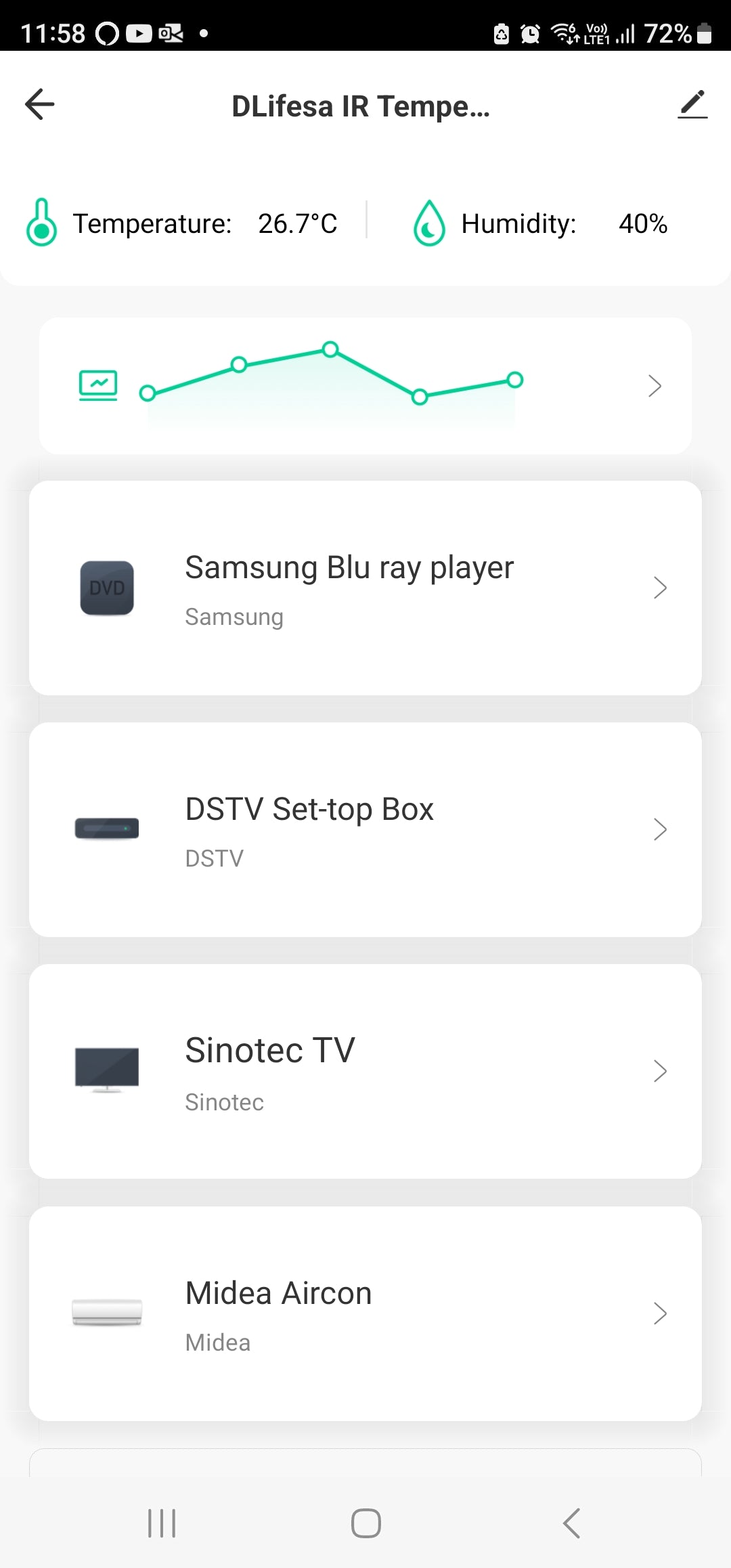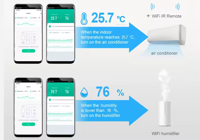 Set Automations based on Temperature & Humidity to turn IR Appliances ON or OFF.