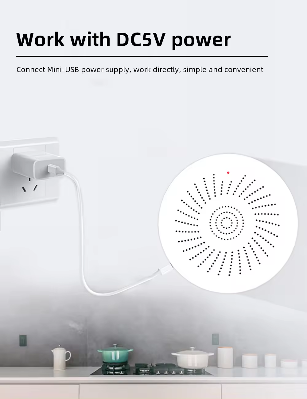 Smart Life Tuya WIFI Gas Detector Sensor w/ 80db Alarm Sound Speaker | 5V