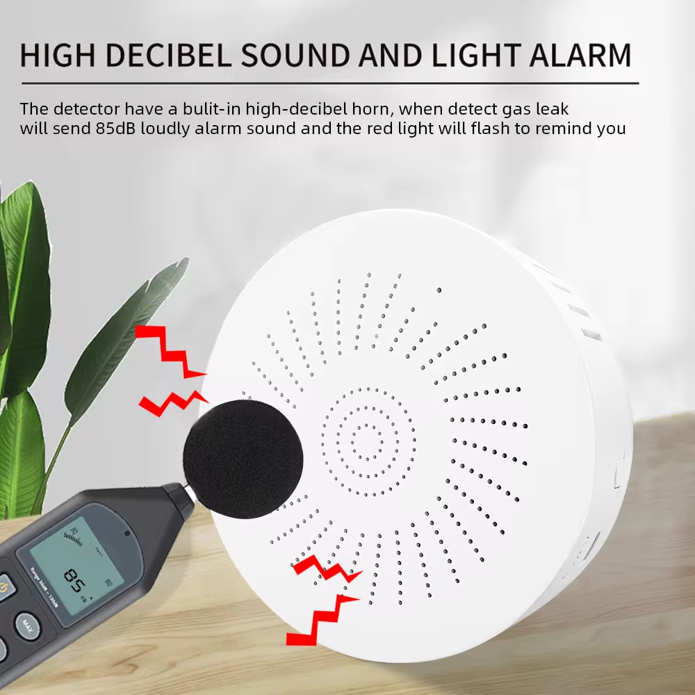The newly designed WIFI Gas Detector has a 80db Loud Alarm which is used to detect the leakage of flammable gas and prevent the harm caused by said gas.