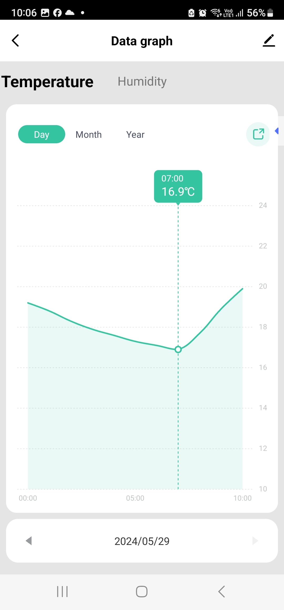 Temperature and Humidity Hourly Line Graph. can be expanded to view Hourly, Daily, Monthly, or Yearly graphs.
