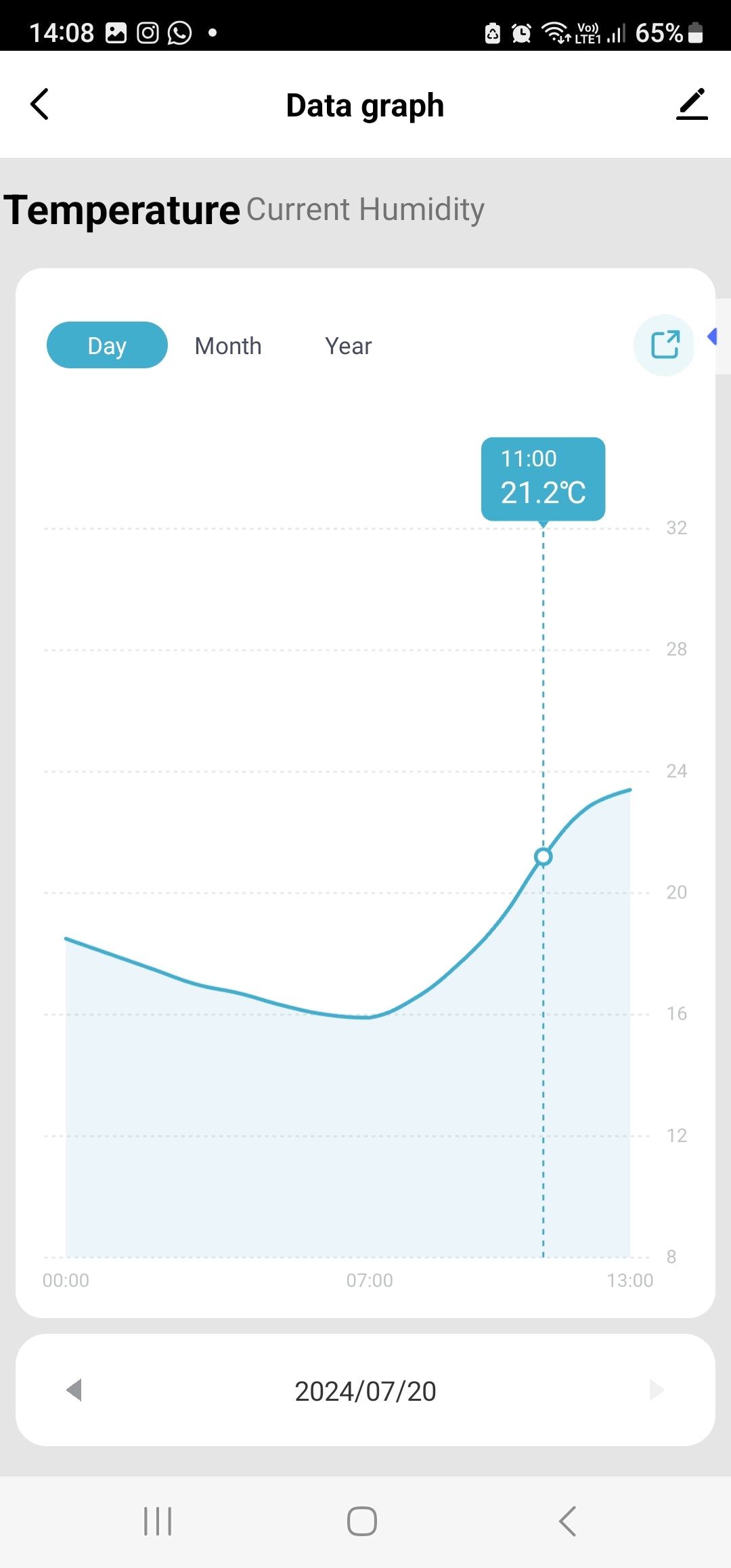 Temperature and Humidity Hourly Line Graph. can be expanded to view Hourly, Daily, Monthly, or Yearly graphs.