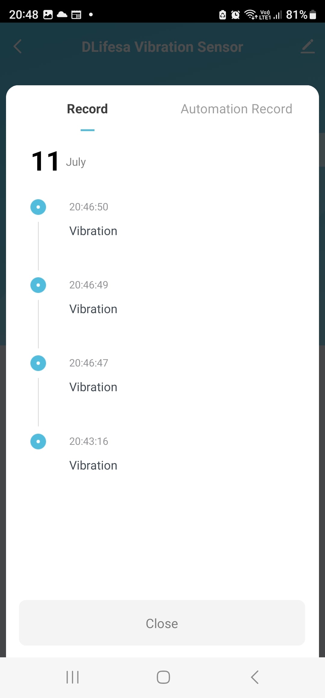 1 x Tuya WIFI Vibration Sensor Detector | 3V.