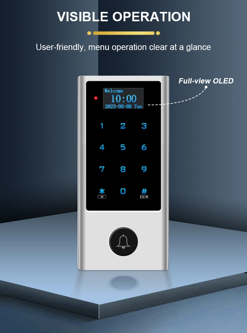 Touch screen Number keypad with LED backlighting and Doorbell Button.