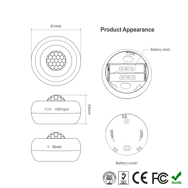 Smart Life Tuya WIFI Wireless Ceiling PIR Motion Detector Sensor | 3V / 5V
