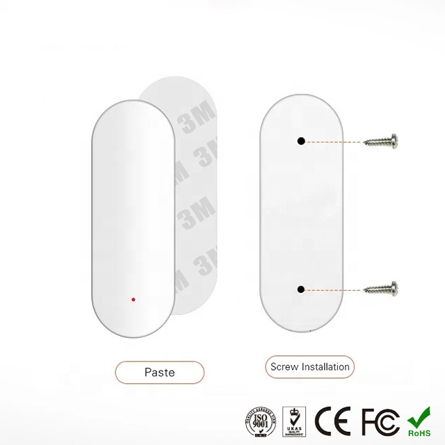 Installation: Magnet on the Door and Sensor on the Door Frame with 3M Tape.