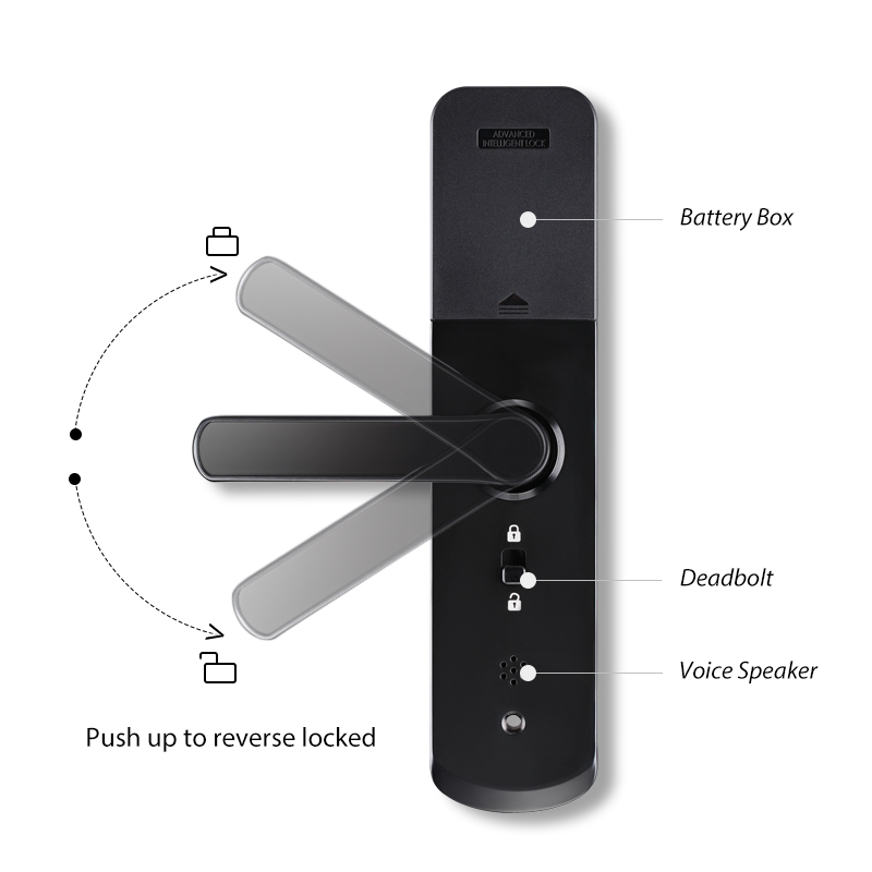- Unlock by Fingerprint, Key, IC card, Password, or App.