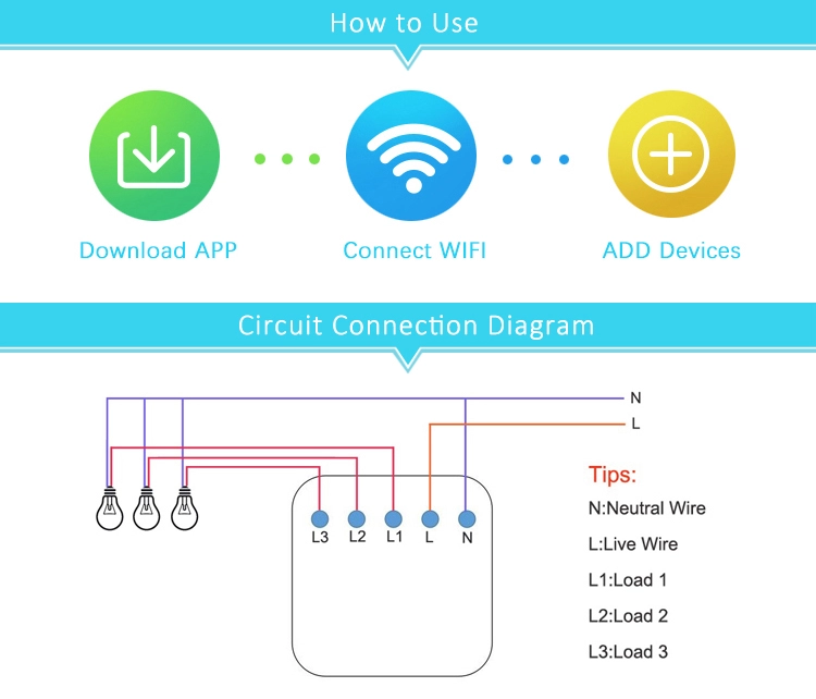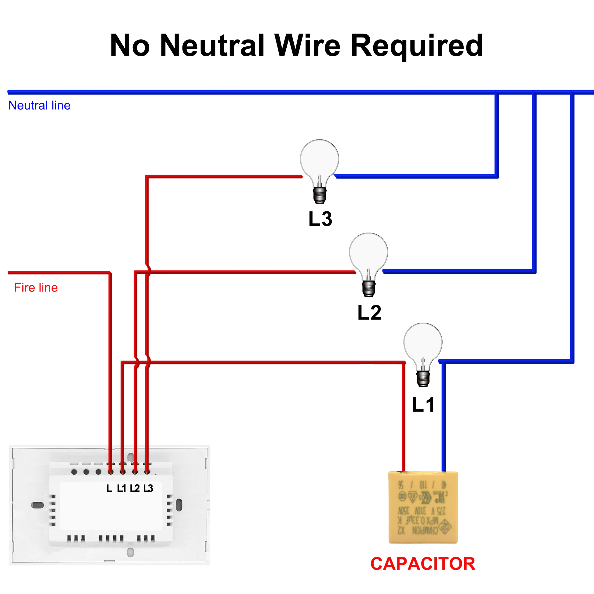 2-way wire connection; Live + Neutral or Live without Neutral.